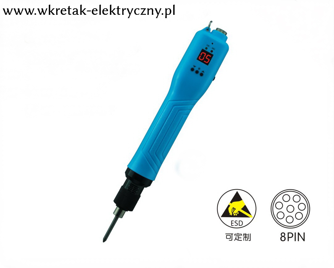 0,29-1,86 Nm precyzyjny wkrętak elektryczny bezszczotkowy z kontrolą momentu obrotowego i z licznikiem wkrętów. Wkrętak uruchamiany przez docisk do wkręta.